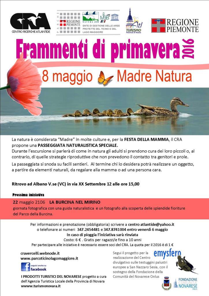 domenica 8 maggio, si svolgerà ”Madre natura” una passeggiata naturalistica che offrirà l’occasione per parlare delle “mamme” in natura, di come gli animali e le piante, abbiano adottato varie strategie per assicurarsi un buon successo nel far crescere i propri “figli”. Per informazioni ed iscrizioni scrivere a centroatlantide@yahoo.it o telefonare al 3478741004.