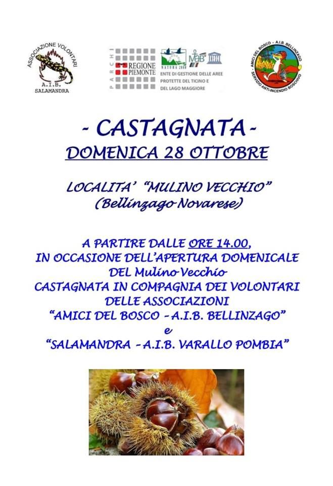 In occasione dell'apertura domenicale del Mulino Vecchio si terrà la castagnata in compagnia dei volontari e delle associazioni "Amici del bosco - A.I.B. Bellinzago" e "Salamandra - A.I.B. Varallo Pombia"