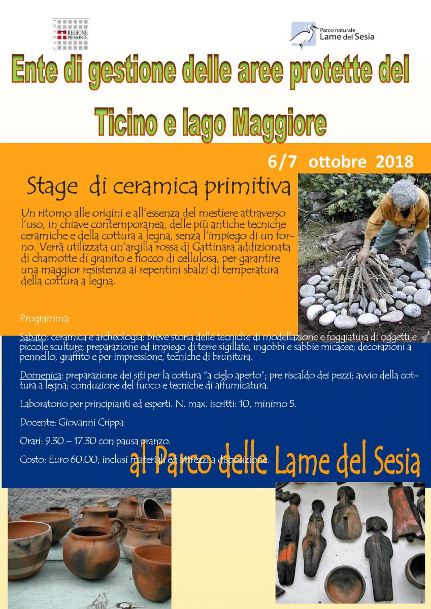 Il laboratorio di ceramica primitiva si terrà nelle giornate di sabato 6 e domenica 7 ottobre 2018 con orario 9.30 - 17.30 presso la sede del Parco Lame del Sesia ad Albano V.se in via XX Settembre 12 .