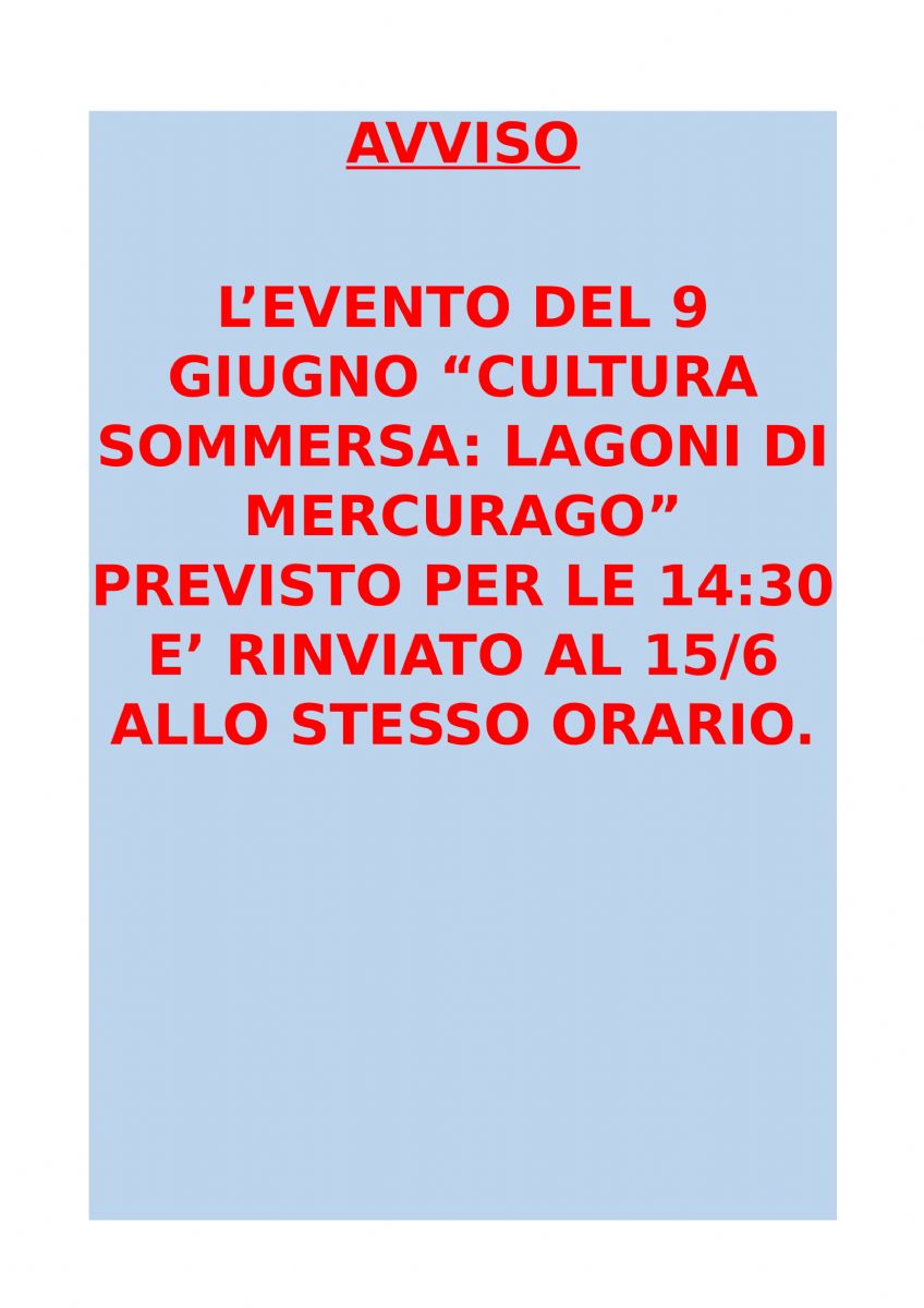 RINVIO EVENTO "CULTURA SOMMERSA : LAGONI DI MERCURAGO"