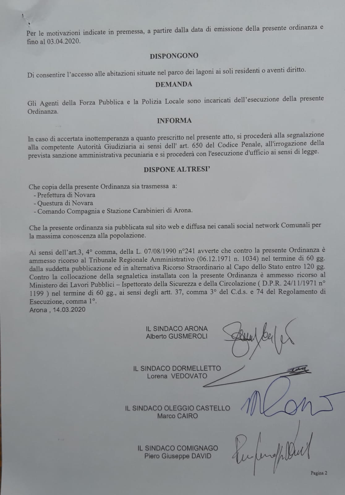 Si informa che con ordinanza sindacale del 14/03/2020 il Parco Naturale dei Lagoni di Mercurago è stato chiuso al pubblico sino al 3 Aprile 2020.