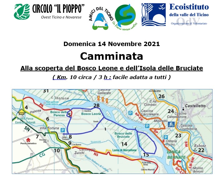 Gli Amici del Ticino, il Circolo Legambiente “Il Pioppo” e l’Ecoistituto della Valle del Ticino organizzano una camminata per Domenica 14 Novembre, con ritrovo alle Sette Fontane alle ore 9:30 e rientro per le 12,30. Al termine pranzo al sacco o, per chi vuole, pranzo presso la Trattoria delle Sette Fontane, la prenotazione per fermarsi a mangiare va fatta entro Domenica 7 Novembre.
