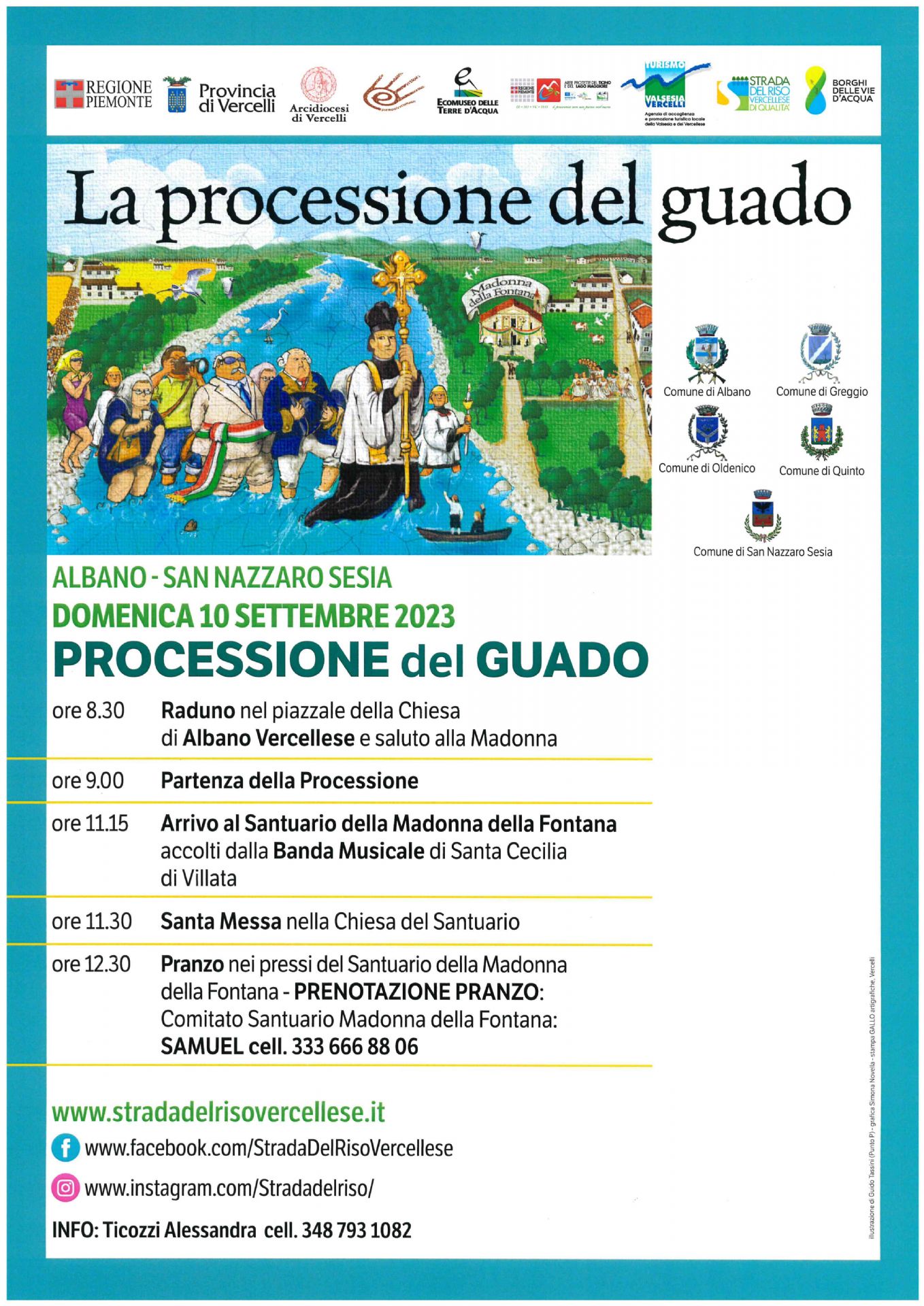 Anche quest’anno Strada del Riso Vercellese e l’Ecomuseo delle Terre d’Acqua stanno organizzando insieme ai comuni interessati e alla Provincia di Vercelli la storica manifestazione della Processione del Guado, un atteso evento che quest’anno compie 20 anni.
