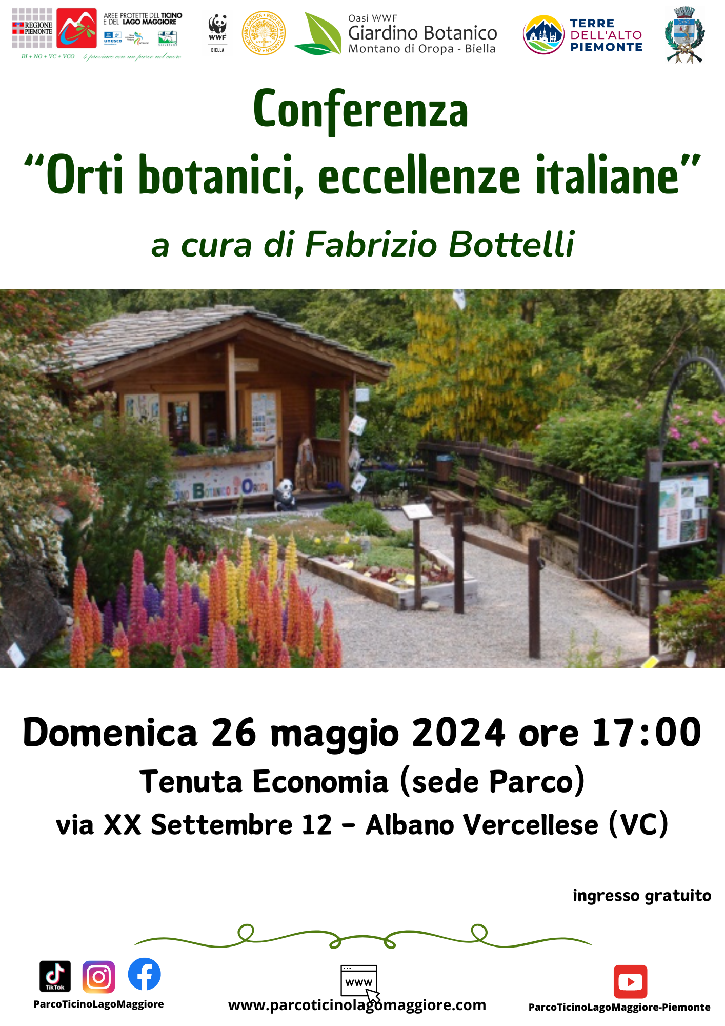 Si terrà domenica 26 maggio alle ore 17:00 presso la Tenuta Economia di via XX Settembre nr. 12 ad Albano Vercellese la conferenza dal titolo “Orti botanici, eccellenze italiane”.