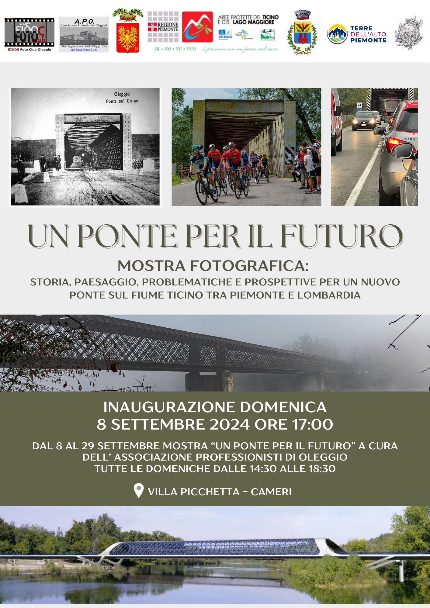 - ore 17:00 a Villa Picchetta, Cameri (NO) inaugurazione della mostra “Un ponte per il futuro” a cura dell’Associazione Professionisti di Oleggio. La mostra sarà visitabile fino al 29 settembre, tutte le domeniche dalle 14:30 alle 18:30.