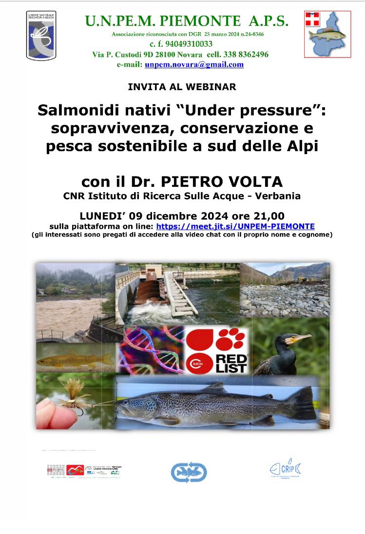 E' stato pubblicato sul sito web del CRIP - Centro di Referenza Ittiofauna Piemonte il video del webinar "Salmonidi nativi 'Under Pressure': sopravvivenza, conservazione e pesca sostenibile a sud delle Alpi"; a cura del Dott. Pietro Volta del CNR - Istituto di ricerca sulle acque di Verbania.