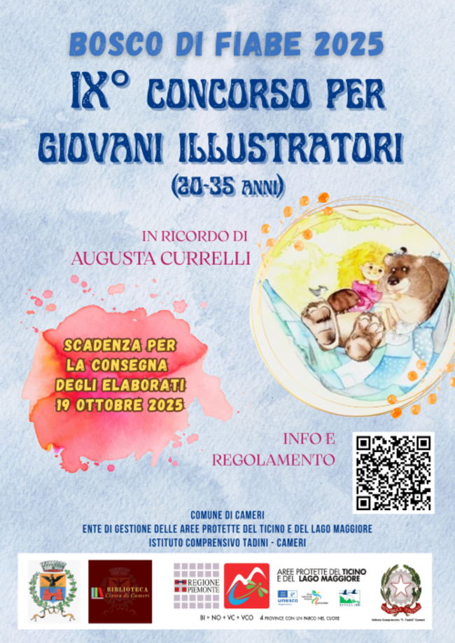 È stata indetta la nona edizione del concorso per giovani illustratori "BOSCO DI FIABE", istituito in ricordo di Augusta Curreli e organizzato dal Comune di Cameri in collaborazione con l'EGAP Ticino e Lago Maggiore e dell''Istituto Comprensivo "F. Tadini" di Cameri.