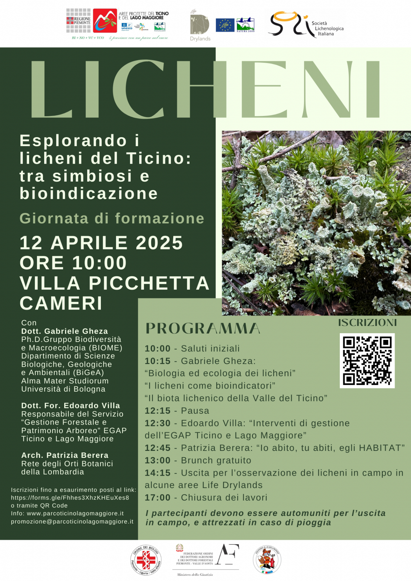 Sabato 12 aprile, alle ore 10 a Villa Picchetta, si terrà la giornata di formazione "Esplorando i licheni del Ticino: tra simbiosi e bioindicazione", realizzata dall'EGAP Ticino e Lago Maggiore all'interno del programma Life Drylands.