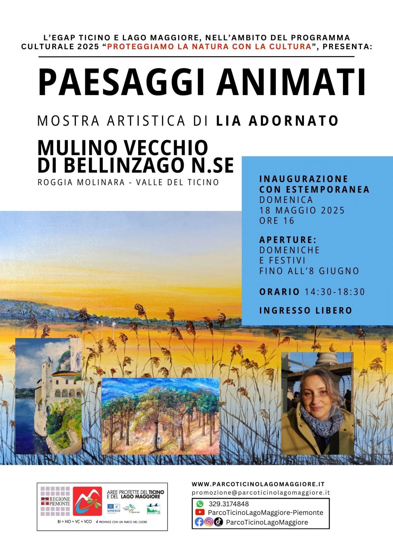 È stata inaugurata domenica 18 maggio la mostra “Paesaggi animati” di Lia Adornato, quadri (soprattutto oli su tela) di paesaggi, a volte abitati da animali, che ritraggono il Lago Maggiore, il Ticino, i boschi.