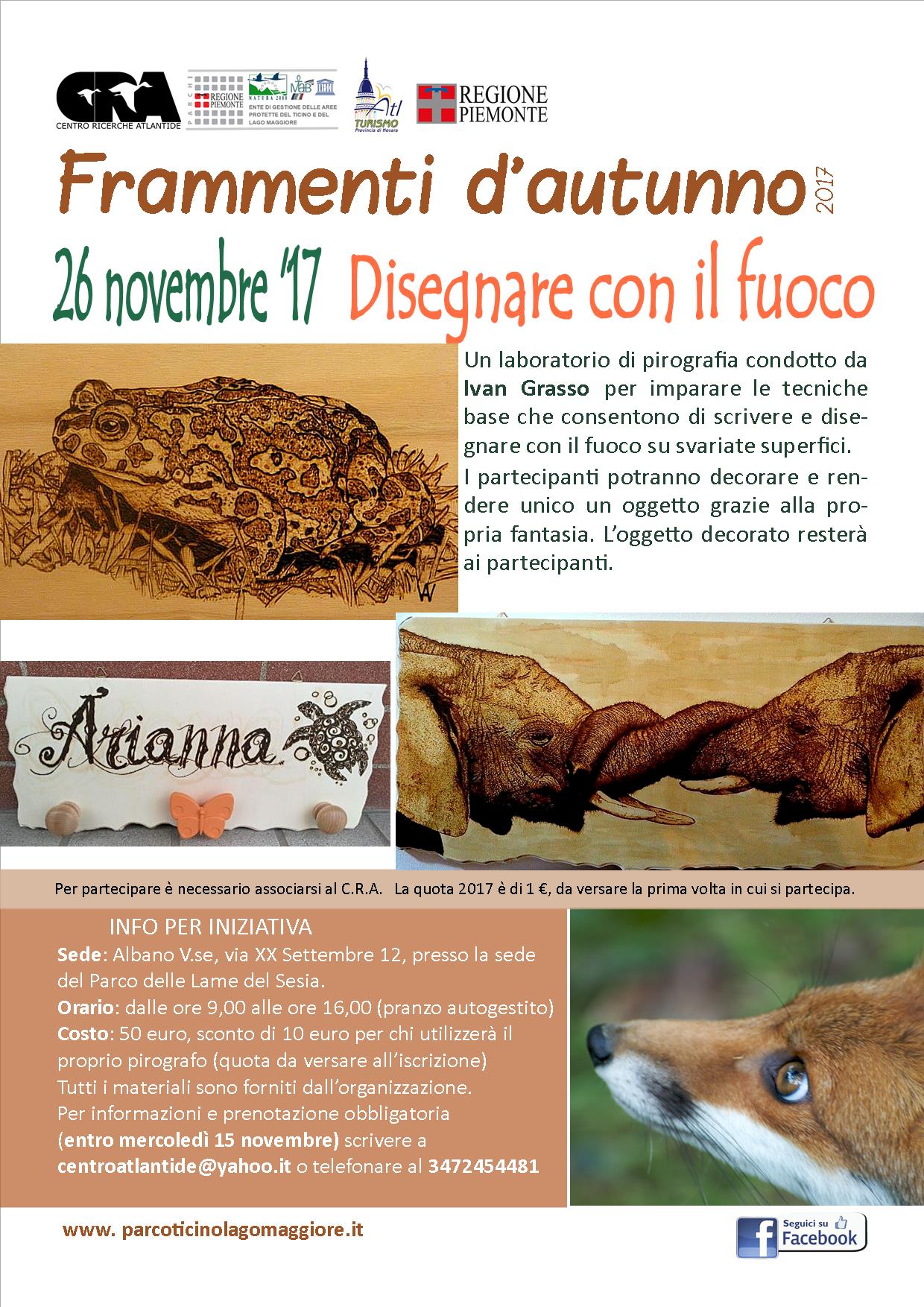 Sono aperte le iscrizioni al LABORATORIO DI PIROGRAFIA che si terrà Domenica 26 novembre, presso la sede del Parco delle Lame del Sesia ad Albano V.se dalle 9,00 alle 16,00.