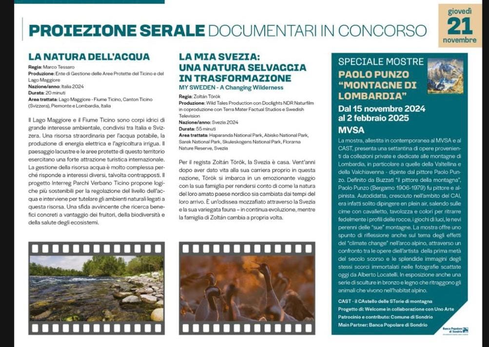 Siamo orgogliosi di annunciare che il documentario "La natura dell'acqua", di cui il nostro Ente è produttore e la cui regia è di Marco Tessaro, è stato ammesso alla 38esima edizione del Sondrio Festival, mostra internazionale dei documentari sui Parchi.