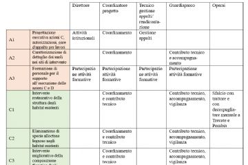 Le attività delle relative azioni sono state distribuite tra il personale a seconda delle località di intervento, delle competenze e delle posizioni occupate: direttore, coordinatore progetto, tecnici, guardiaparco e operai. Le spese di personale sono rendicontate a regime forfettario e sono ripartite come di seguito: