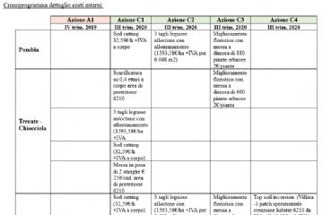 Le azioni C comprendono interventi effettuati da ditte esterne e sono distribuite nelle cinque località individuate nei siti Natura 2000 “Valle Ticino”, “Lame Sesia e Isolone di Oldenico” e “Baraggia di Rovasenda”. Il totale dei costi esterni per le Azioni C ammonta a 198.841 € ripartiti come segue: