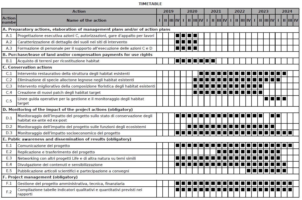 Gli obiettivi comprendono il ripristino delle componenti degli habitat target, riduzione e controllo delle specie arboree invasive, il miglioramento della componente floristica e la creazione di nuovi appezzamenti di habitat, produzione e esportazione di linee guida per gestione e monitoraggio degli habitat e promozione e diffusione dei risultati del progetto tra grande pubblico e portatori di interesse.