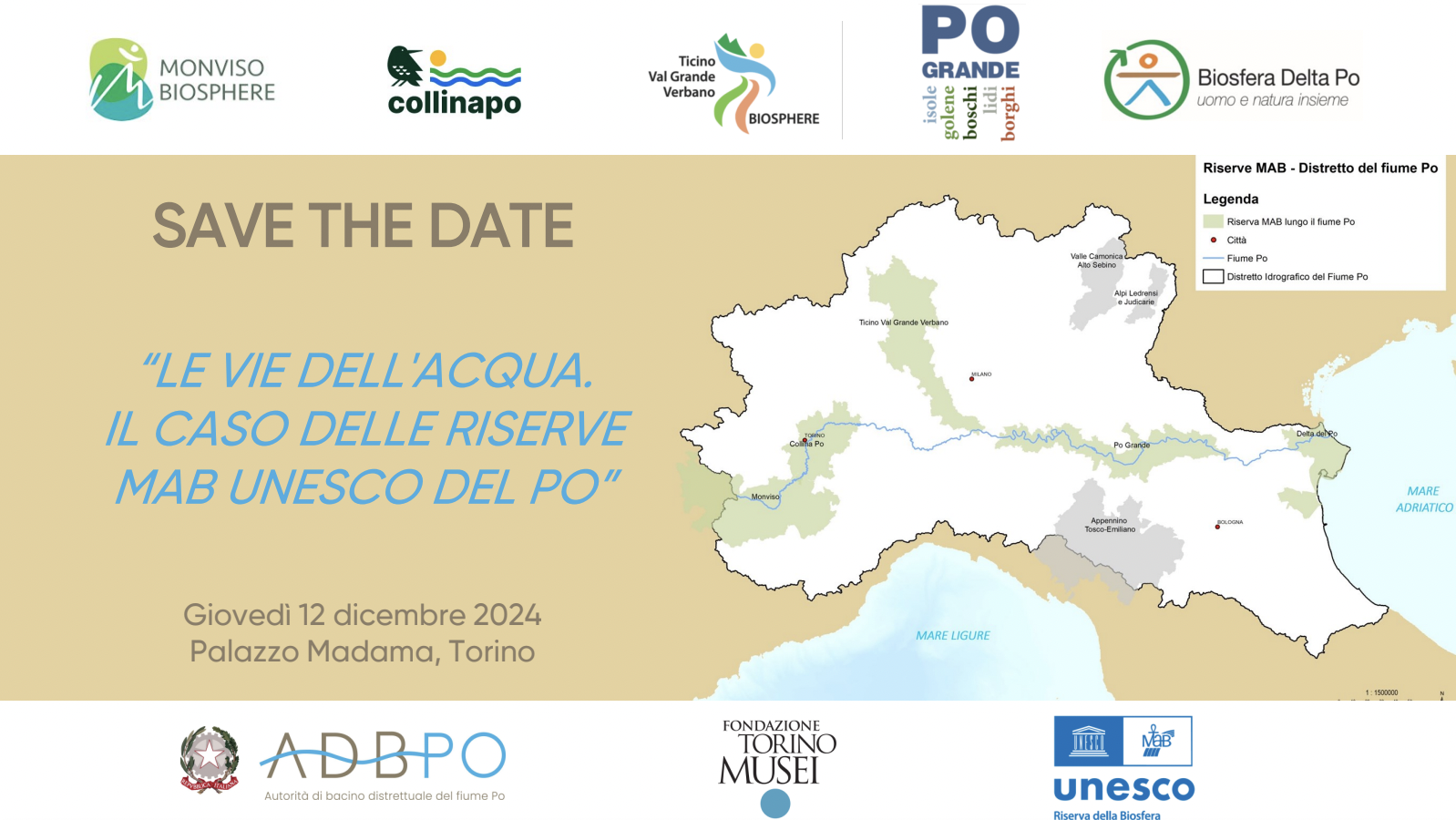 Sarà un'occasione preziosa per approfondire il ruolo delle Riserve MAB UNESCO rispetto alla gestione fluviale attraverso due differenti sessioni: la prima - dedicata al rapporto tra i fiumi e le città, organizzata dalla Città di Torino in dialogo con Roma e Saragozza; la seconda incentrata sull'intesa tra le cinque Riserve della Biosfera lungo l'asta del Po, (Monviso, CollinaPo, Ticino Val Grande Verbano, Po Grande e Delta Po) con il lancio delle prime iniziative comuni su cui lavoreranno e una tavola rotonda di discussione sul futuro delle aree rivierasche.