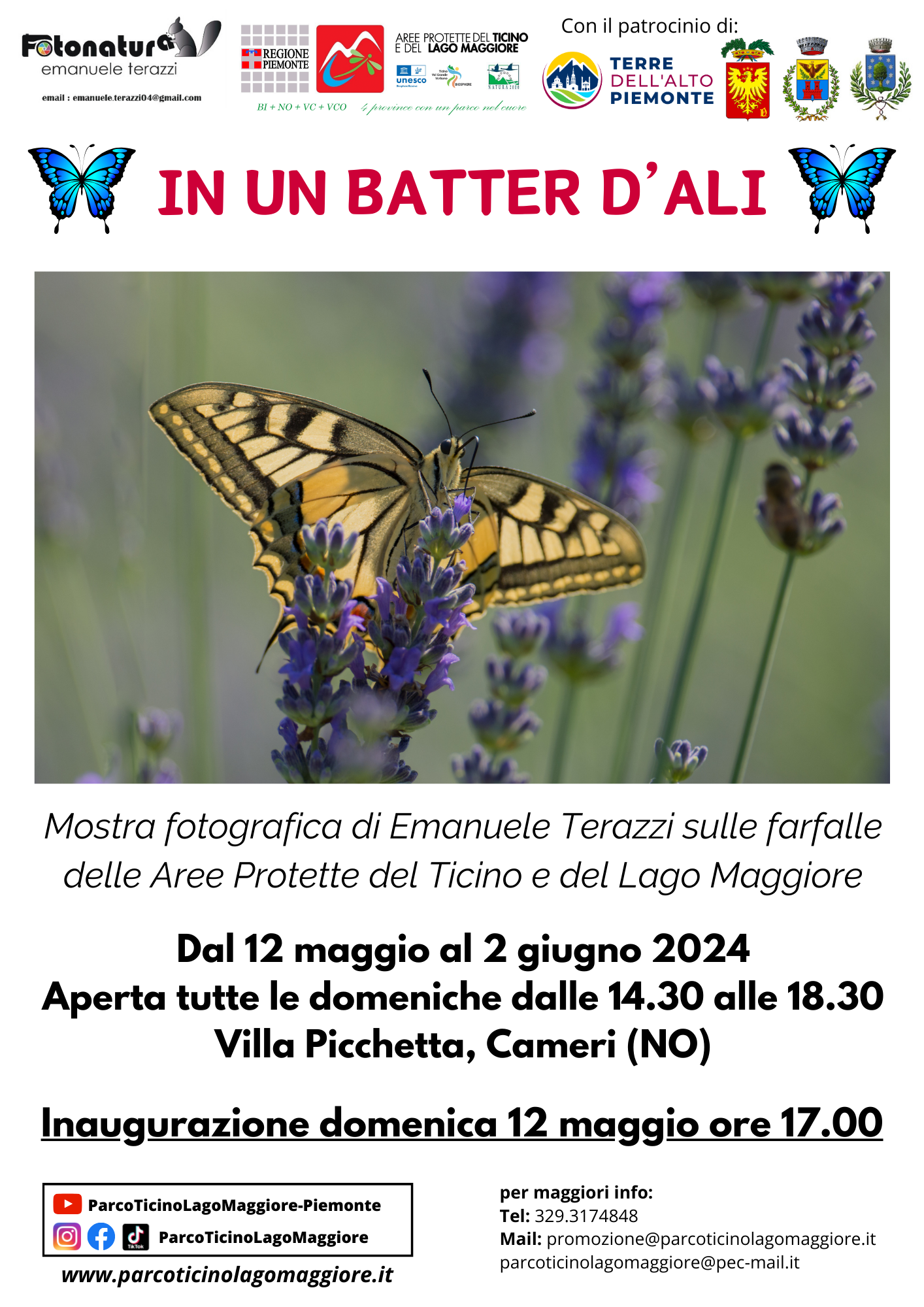 Inaugurazione della mostra fotografica sulle farfalle delle Aree Protette del Ticino e Lago Maggiore "In un batter d'ali" a cura di Emanuele Terazzi.