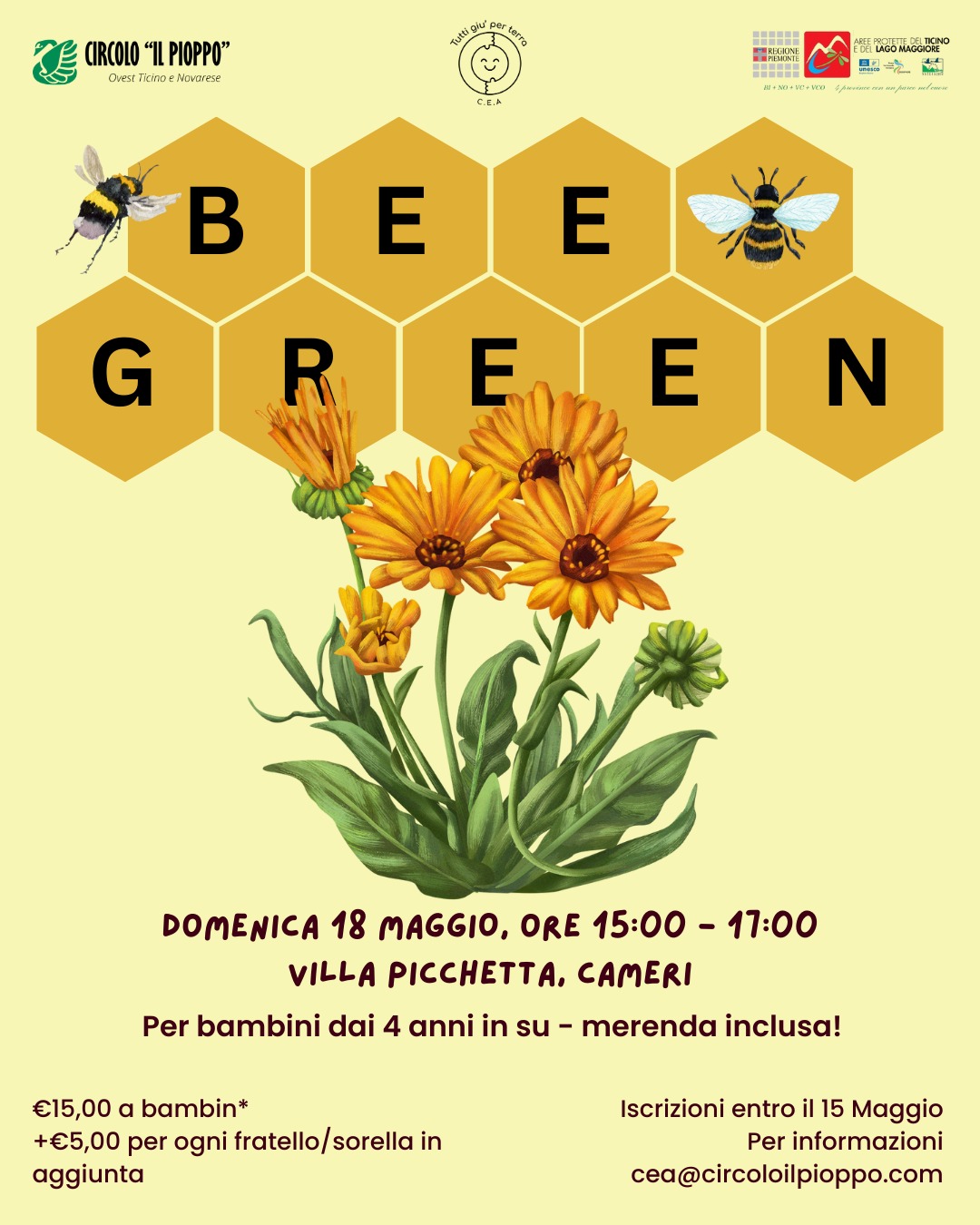 Domenica 18 maggio a Villa Picchetta (Cameri) ci sarà "Bee Green", un'attività per bambini da 4 anni a cura di CEA - Circolo Il Pioppo.