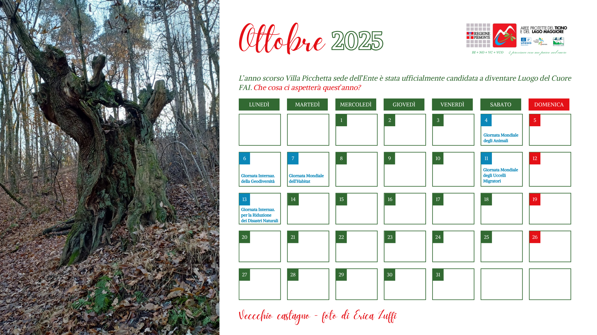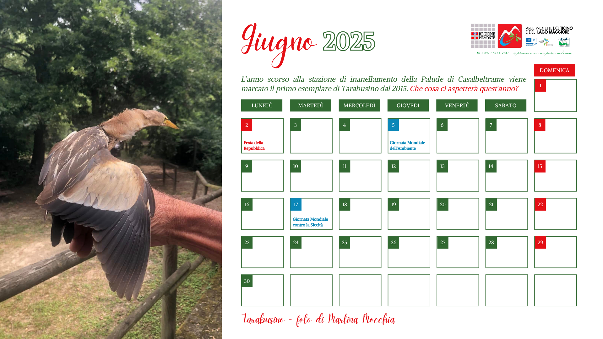 Il calendario 2026 dell'Ente di Gestione delle Aree Protette del Ticino e del Lago Maggiore