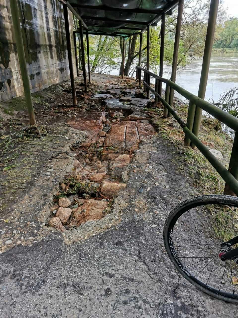 Fondotoce: pista ciclabile interrotta per smottamento, lavori in atto per la messa in sicurezza.