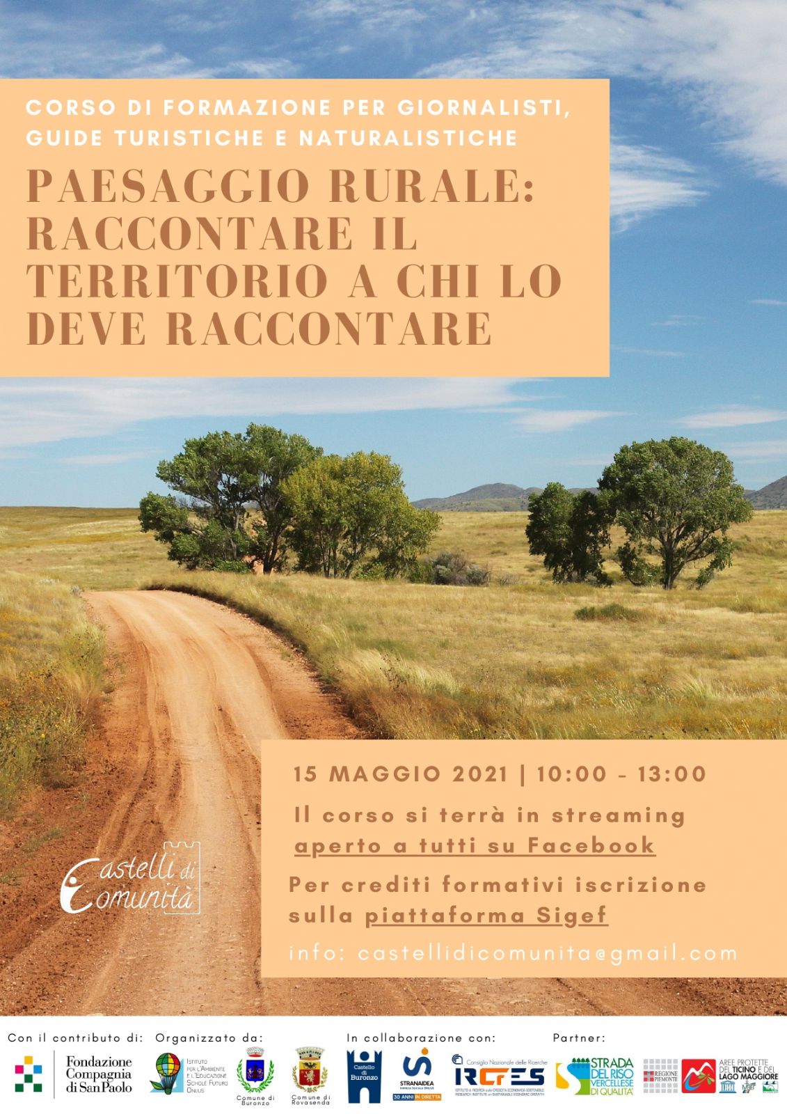 Sabato 15 maggio, dalle 10.00 alle 13.00, si terrà il corso di formazione "Paesaggio rurale: raccontare il territorio a chi lo deve raccontare", dedicato a giornalisti, guide turistiche e naturalistiche.