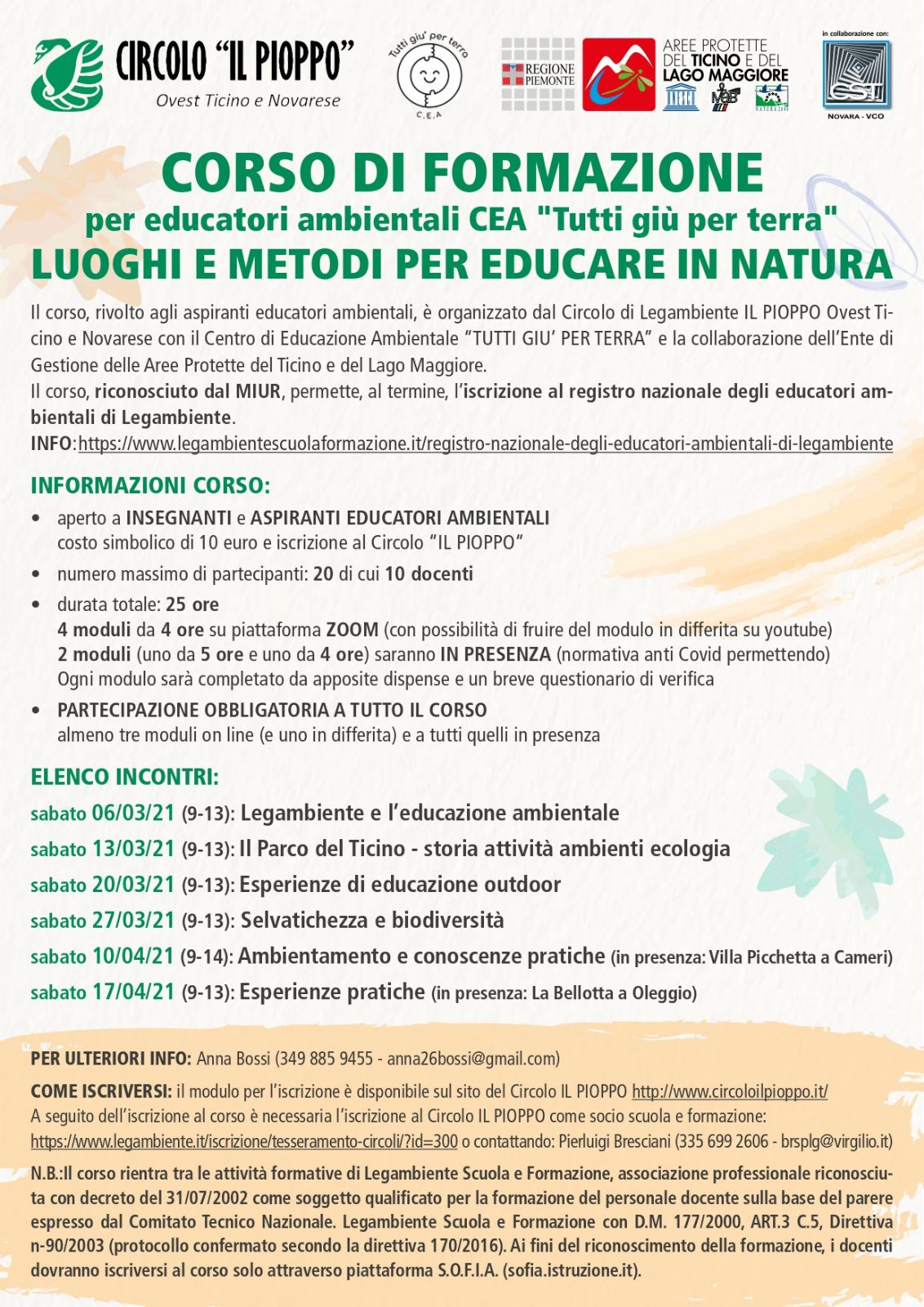 Il corso, riconosciuto dal MIUR, permette, al termine, l’iscrizione al registro nazionale degli educatori ambientali