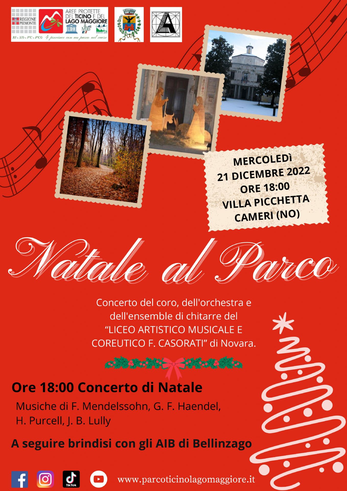 Il giorno mercoledì 21 dicembre dalle ore 18 in Villa Picchetta si svolgerà il concerto di Natale in Villa Picchetta con la partecipazione del Liceo Artistico Musicale F. Casorati di Novara e in seguito un rinfresco con brindisi organizzato dagli AIB di Bellinzago.