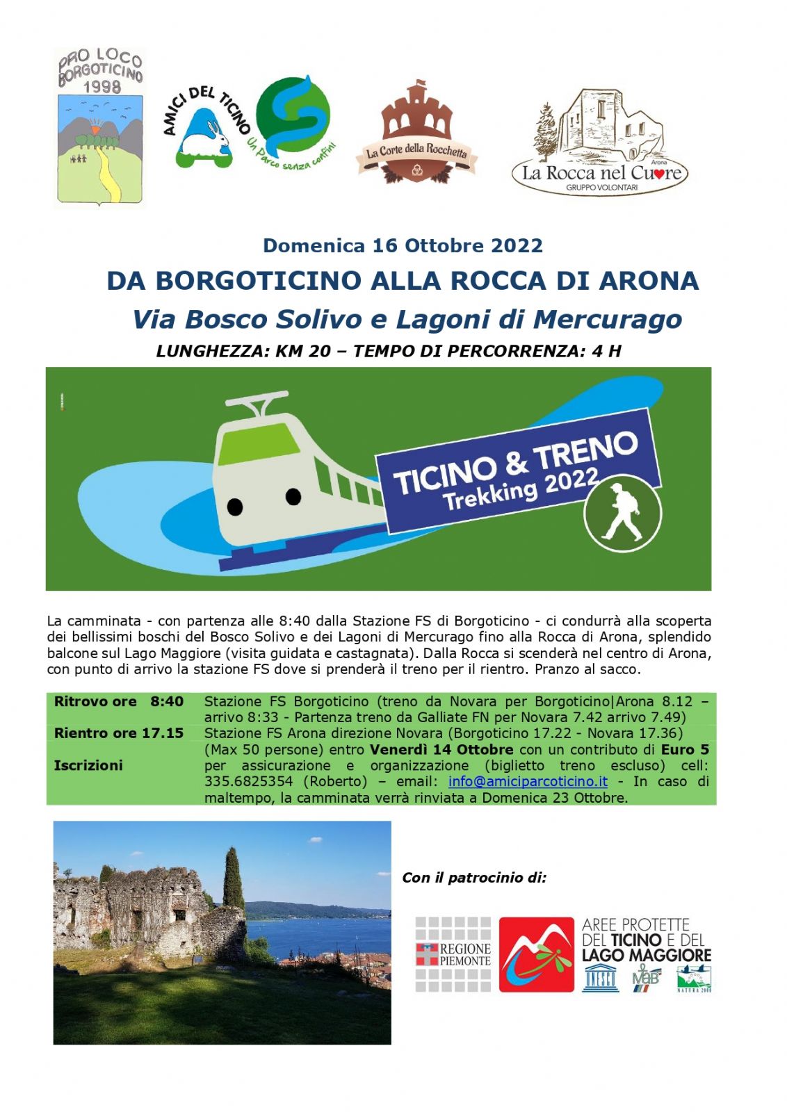 Si comunica la camminata del 16 ottobre 2022 che condurrà nei boschi del Bosco Solivo e dei Lagoni di Mercurago, fino ad arrivare alla Rocca di Arona.