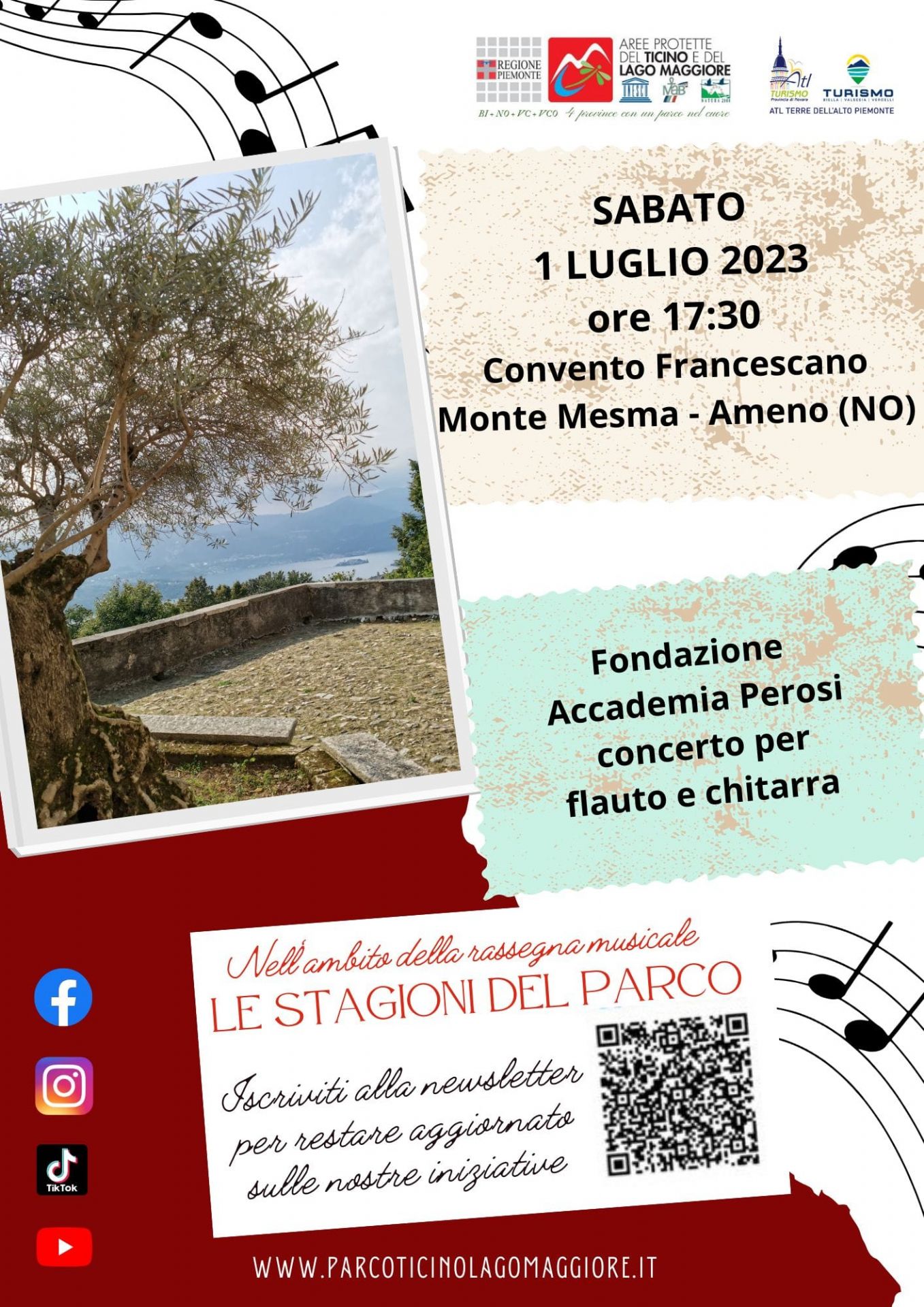 Ad esibirsi nella splendida cornice del Convento Francescano di Ameno (NO), riserva naturale Monte Mesma, sarà l'Accademia musicale Perosi di Biella con un concerto per flauto e pianoforte.
