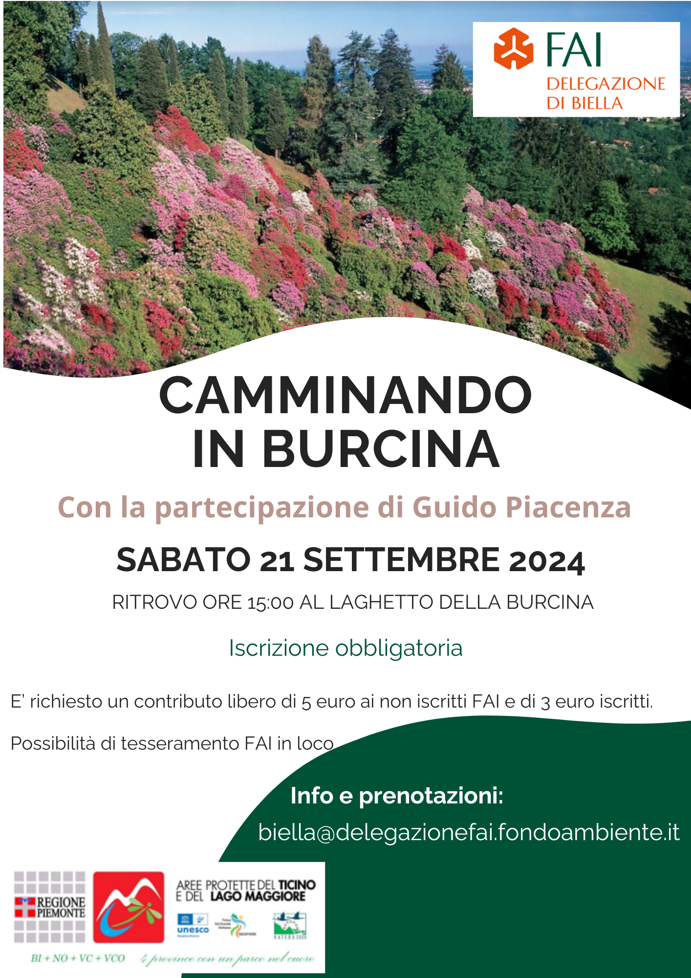 - 21 settembre ore 15:00 passeggiata a cura FAI Biella. Ritrovo al laghetto.