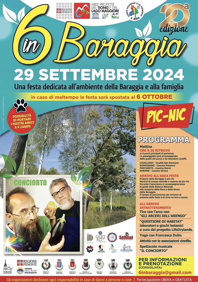 Una festa dedicata all’ambiente della Baraggia e alla famiglia, con escursioni guidate, musica, laboratori, diverse attività e degustazioni, organizzata dai comuni di Romagnano, Cavaglio d’Agogna, Cavallirio, Cureggio, Fontaneto d’Agogna, Ghemme e Prato Sesia.