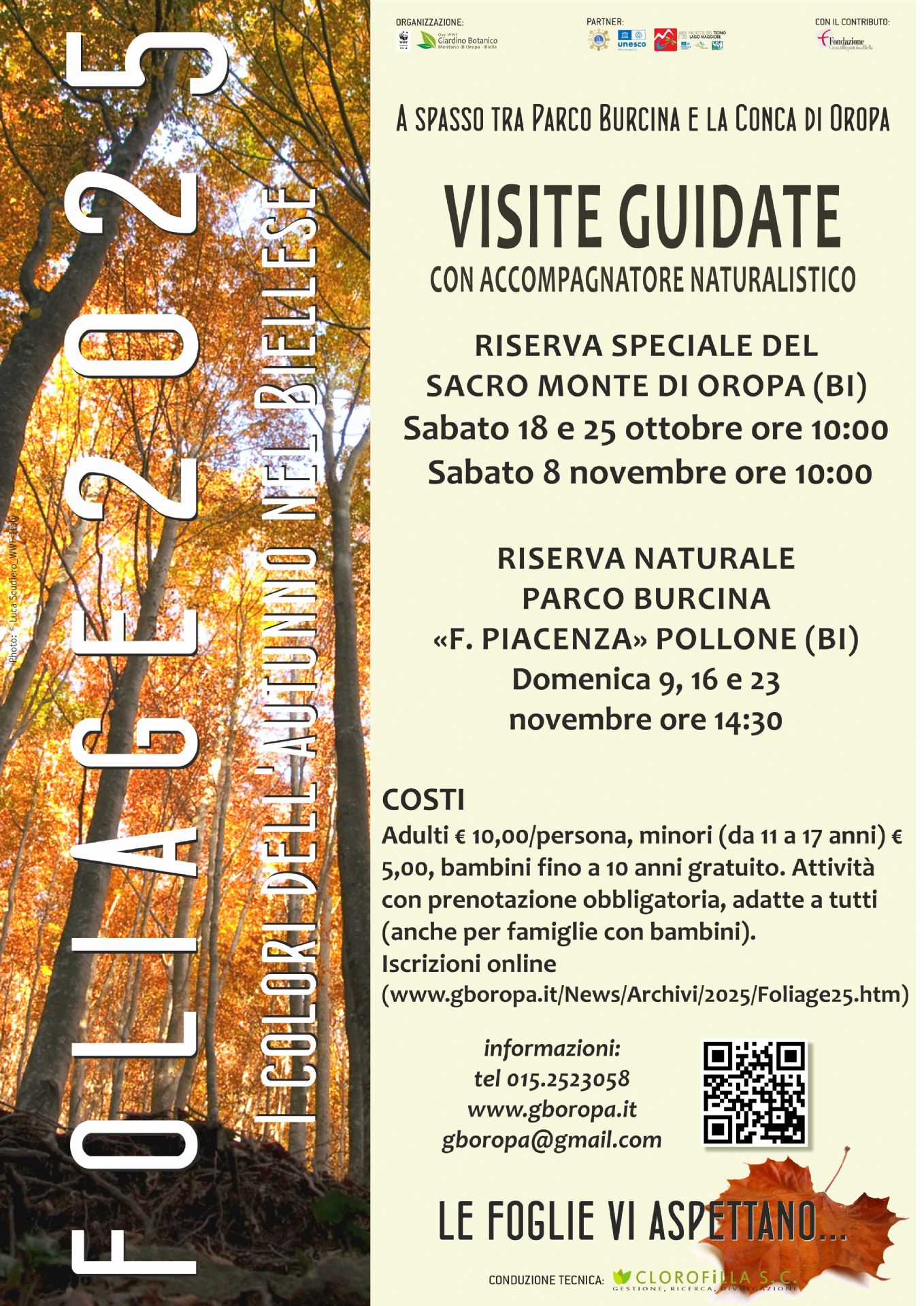 Ecco allora "Foliage. I colori dell'autunno nel Biellese", la manifestazione organizzata dall’Oasi Giardino Botanico di Oropa e gestita dal WWF Biella, giunta alla 19° edizione: una celebrazione dell’autunno sul territorio con il pretesto di spiare la natura, ammirando scorci di grande bellezza paesaggistica.