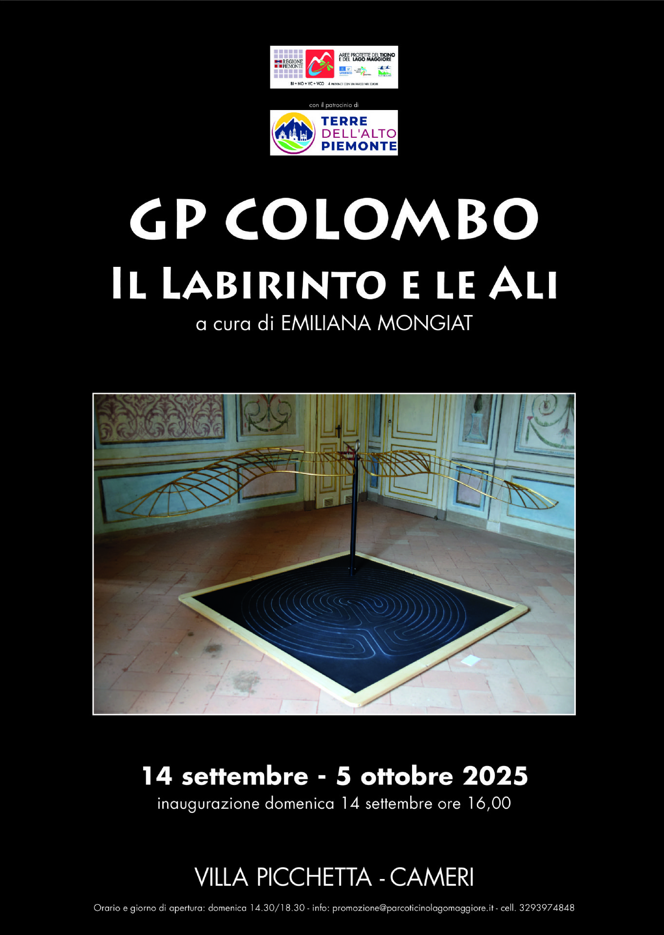 L'apertura delle mostre autunnali di Villa Picchetta si terrà domenica 14 settembre, alle ore 16, con l'inaugurazione dell'esposizione artistica di GP Colombo "Il Labirinto e le ali", a cura di Emiliana Mongiat. La mostra sarà visitabile fino al 5 ottobre, tutte le domeniche dalle 14:30 alle 18:30.