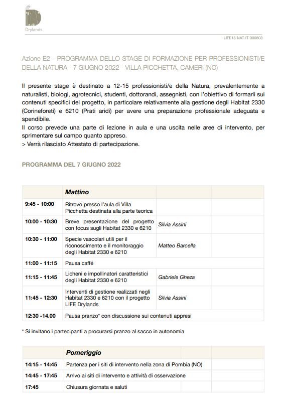Stage di formazione per i professionisti della natura