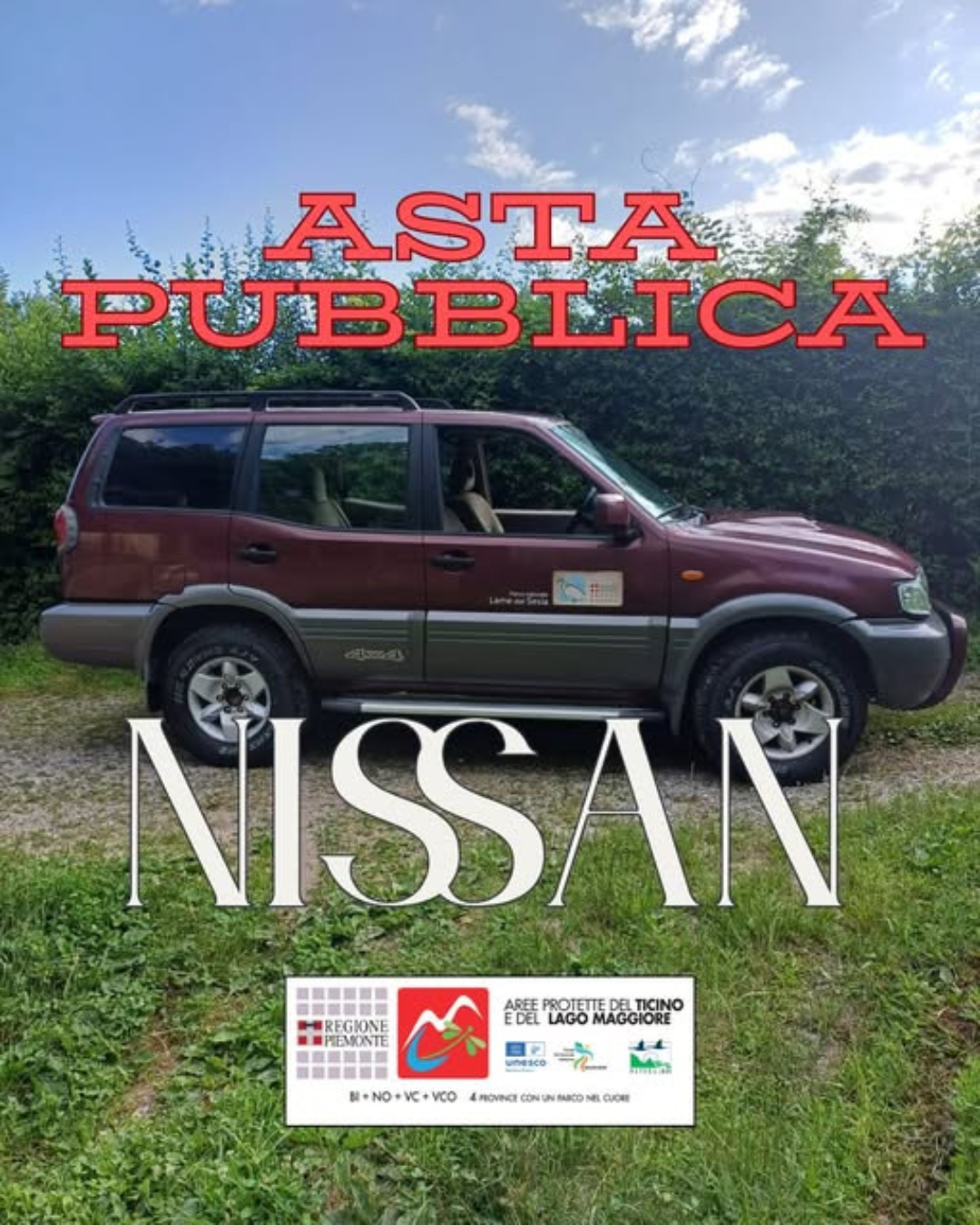 L'Ente di Gestione delle Aree Protette del Ticino e del Lago Maggiore intende procedere alla vendita mediante asta pubblica di n. 1 autoveicolo di proprietà non più utilizzato per fini istituzionali da questa Amministrazione.