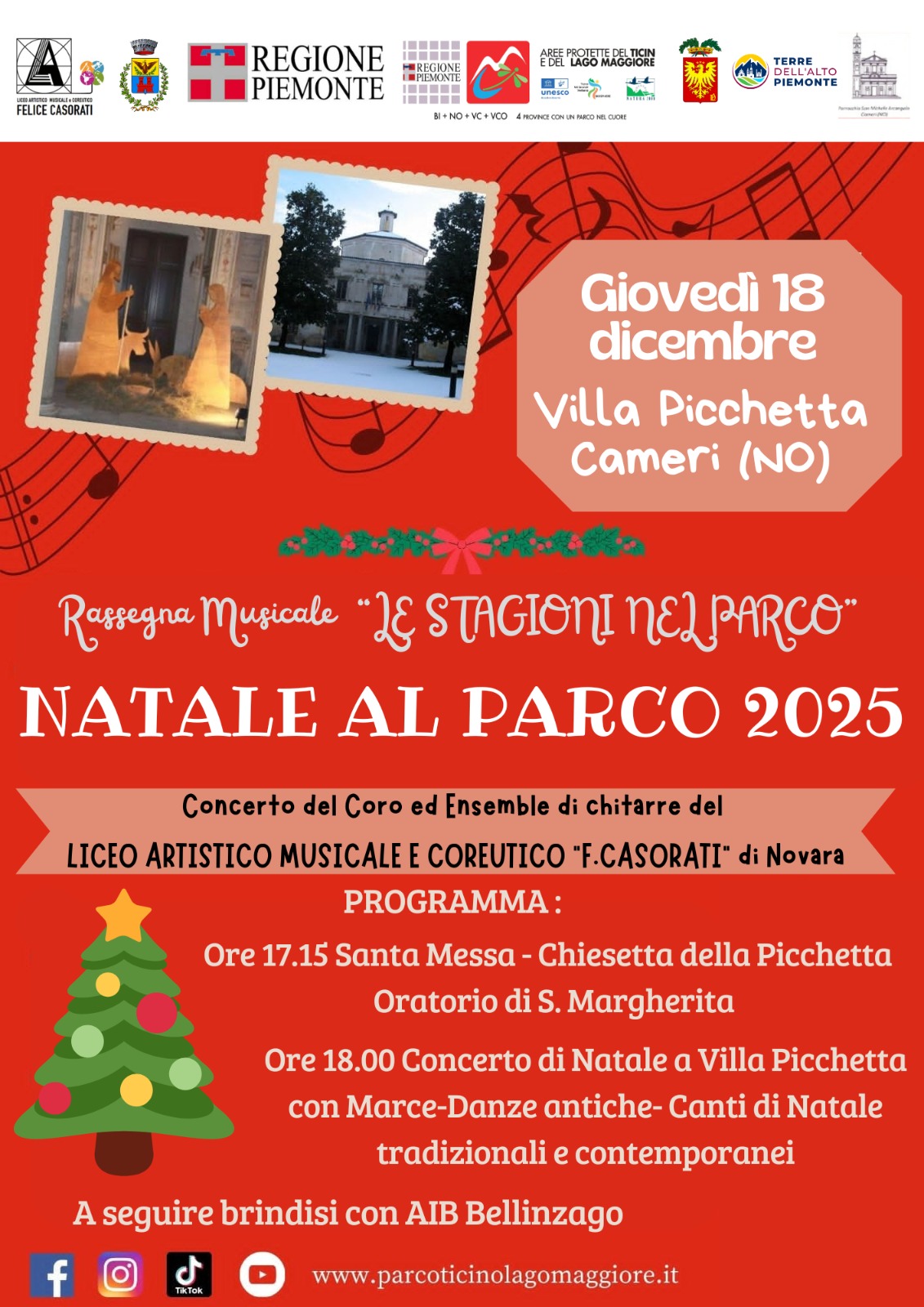 Si terrà domani (giovedì 18 dicembre) nella bellissima cornice della sede legale di Villa Picchetta a Cameri (NO) il tradizionale concerto natalizio, appuntamento invernale della rassegna musicale "Le Stagioni del Parco".