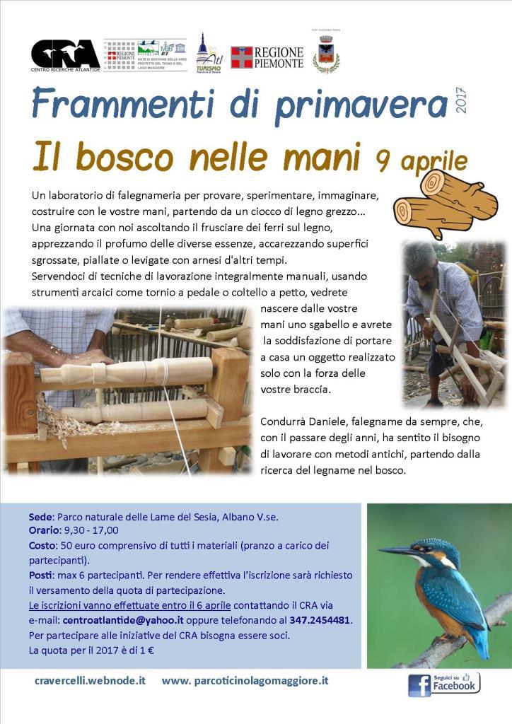 Le due differenti iniziative proposte dal Centro Ricerche Atlantide in collaborazione con l’Ente di Gestione delle aree protette del Ticino e del Lago Maggiore saranno, “Il bosco nelle mani”, un laboratorio di falegnameria e “Andar per erbette”, una passeggiata per il riconoscimento delle erbe alimentari spontanee