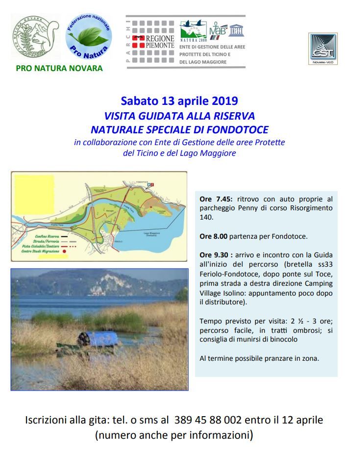 prima strada a destra del Camping Village Isolino: appuntamento poco dopo il distributore) - Tempo previsto per la visita due ore e mezza - tre ore. Percorso facile, in tratti ombrosi, si consiglia di munirsi di binocolo.