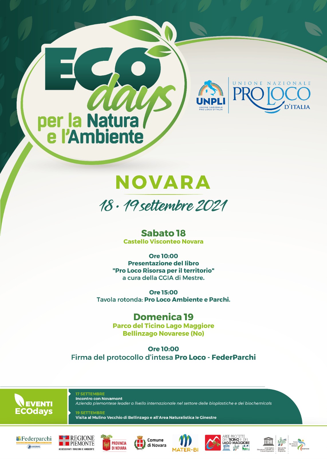 Nelle giornate di Sabato 18 e Domenica 19 Settembre 2021 è organizzato l'evento: "Eco days- per la Natura e l'Ambiente", nel quale saranno presenti le ProLoco d'Italia.