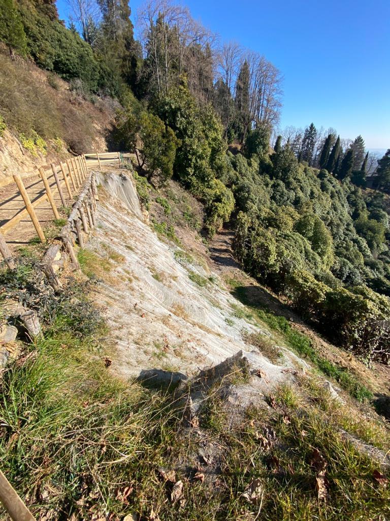 E' previsto l'uso di terre armate di altezza di circa 7,50 m. che rinverdendosi si integreranno completamente all'ambiente del Parco. La nuova terra armata permetterà di realizzare una più ampia area di sosta lungo il sentiero in sommità della conca, consentendo così di creare un punto panoramico privilegiato sui rododendri e sulla sottostante pianura.