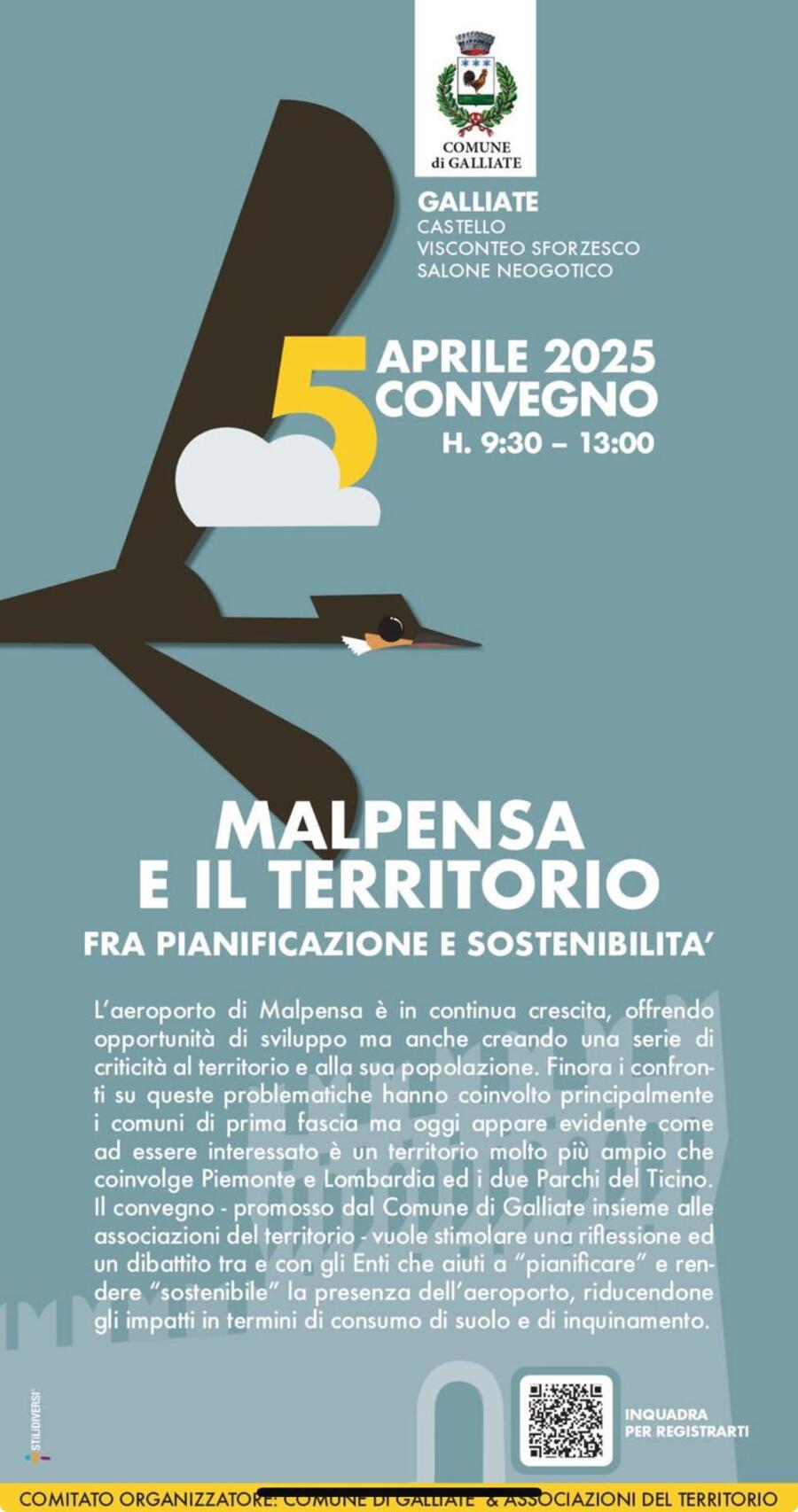 Sabato 5 aprile, presso il Salone Neogotico del Castello di Galliate (NO), si terrà il convegno "Malpensa e il territorio. Fra pianificazione e sostenibilità", promosso dal Comune di Galliate con le associazioni del territorio.