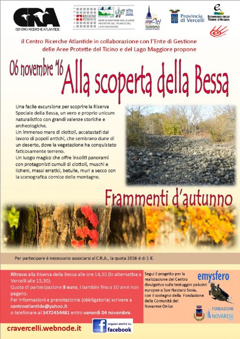 In allegato alla newsletter trovate le prossime due proposte di “Frammenti d’autunno 2016” organizzate dal CRA in collaborazione con l’Ente di Gestione delle aree protette del Ticino e del Lago Maggiore, un’escursione Alla scoperta della Bessa ed un laboratorio di feltro di Shop Amelia Sheep