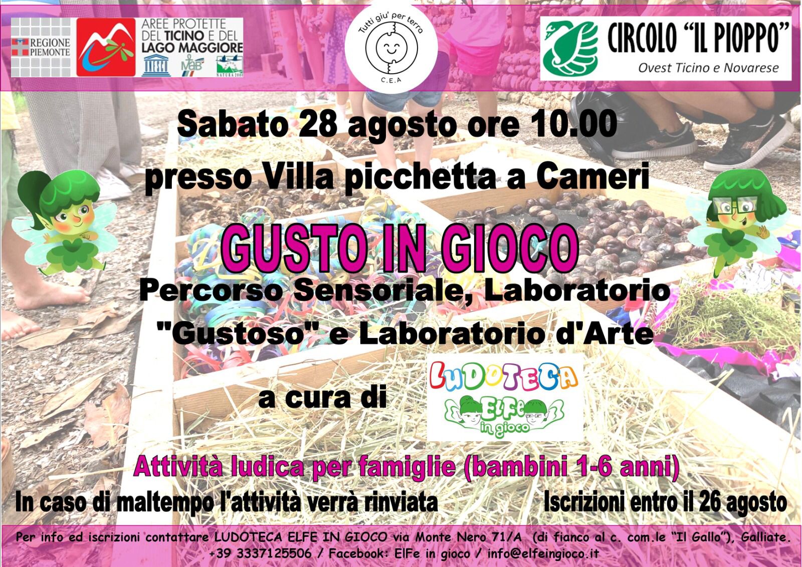 Percorso sensoriale e laboratorio d'arte per famiglie presso Villa Picchetta a Cameri (NO) nella giornata di sabato 28 agosto 2021 alle ore 10.00