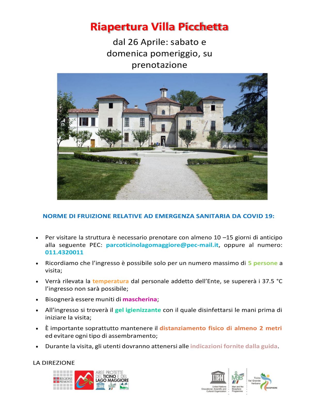 Dal 26 aprile sarà di nuovo possibile visitare la Villa Picchetta di Cameri ed il Mulino Vecchio di Bellinzago Novarese. Le visite saranno possibili per le giornate del sabato e domenica pomeriggio, per un numero massimo di 5 persone, dietro prenotazione e rispettando le norme anti-Covid (mascherina, distanziamento ecc.)