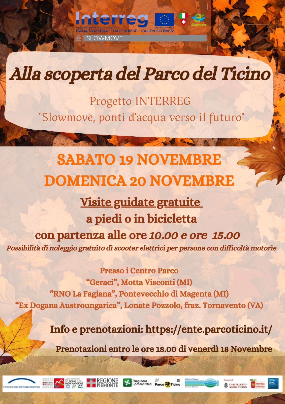 Il progetto INTERREG continua con le visite guidate: "Slowmove, ponti d'acqua verso il futuro" nei giorni 19 e 20 novembre 2022, presso i seguenti Centri Parco: