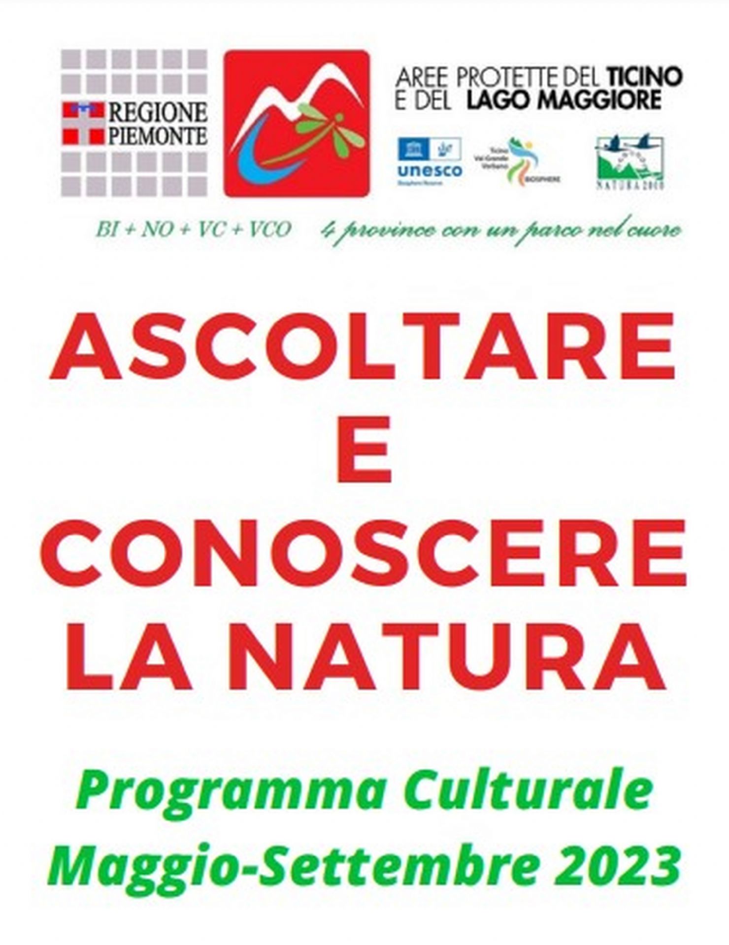 Dunque appuntamenti diversi che spaziano dalle mostre fotografiche, alla presentazione di guide e libri, ai concerti, tutto con un filo comune: raccontare e far vivere le aree protette in gestione all'ente. Come spiega la Presidente Erika Vallera: "Le aree protette in gestione sono scrigni preziosi, luoghi unici ricchi di biodiversità. Valorizzarli con un programma culturale ci permette di offrire ai visitatori una fruizione diversa, culturalmente stimolante, che possa adattarsi ad un pubblico ampio che si trasformi poi in un fruitore attento. Per questo il programma è presentato con lo slogan "Ascoltare e conoscere la natura" perché l'obiettivo è raccontare le aree protette per stimolare l'attenzione e il rispetto dell'ambiente e dei territori visitati, ricordando che conoscere è il primo passo per proteggere.”