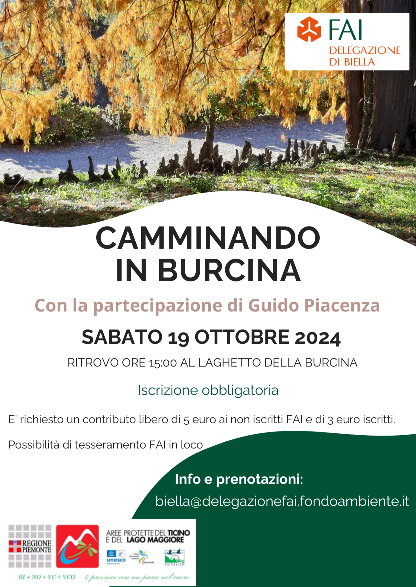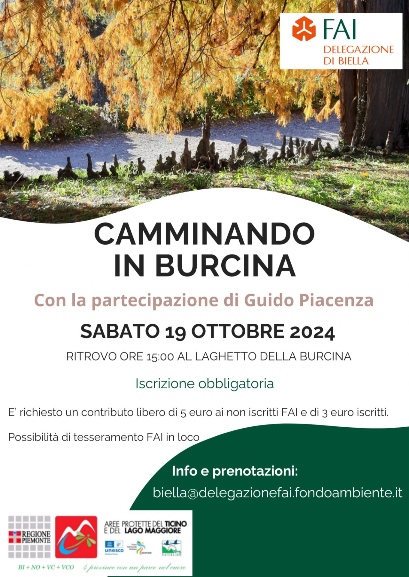 Passeggiata a cura del FAI di Biella dalle ore 15:00 nella Riserva Naturale del Parco Burcina a Pollone (BI)