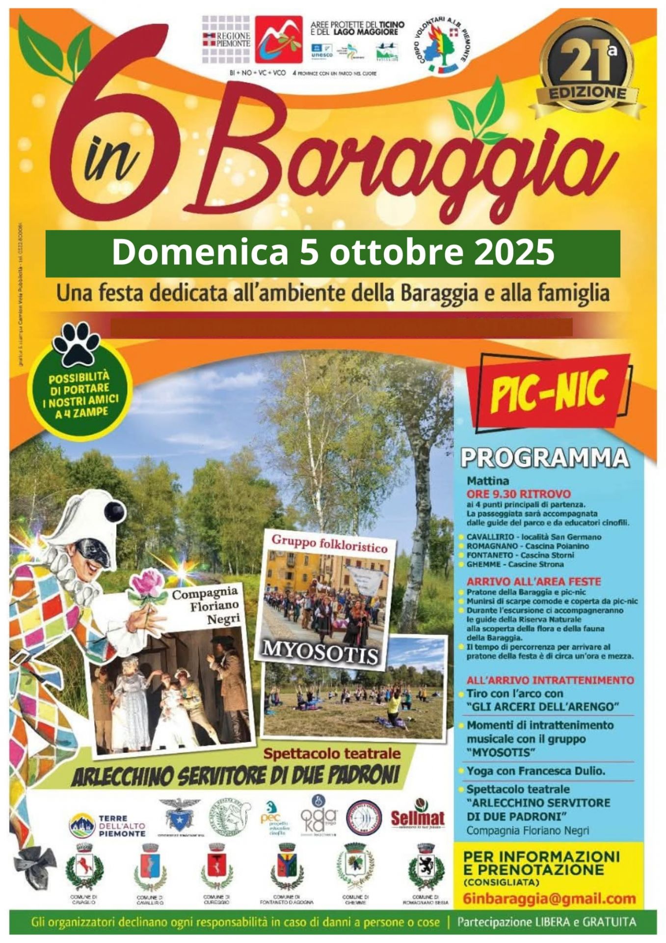Per informazioni e prenotazioni (consigliata): e-mail 6inbaraggia@gmail.com