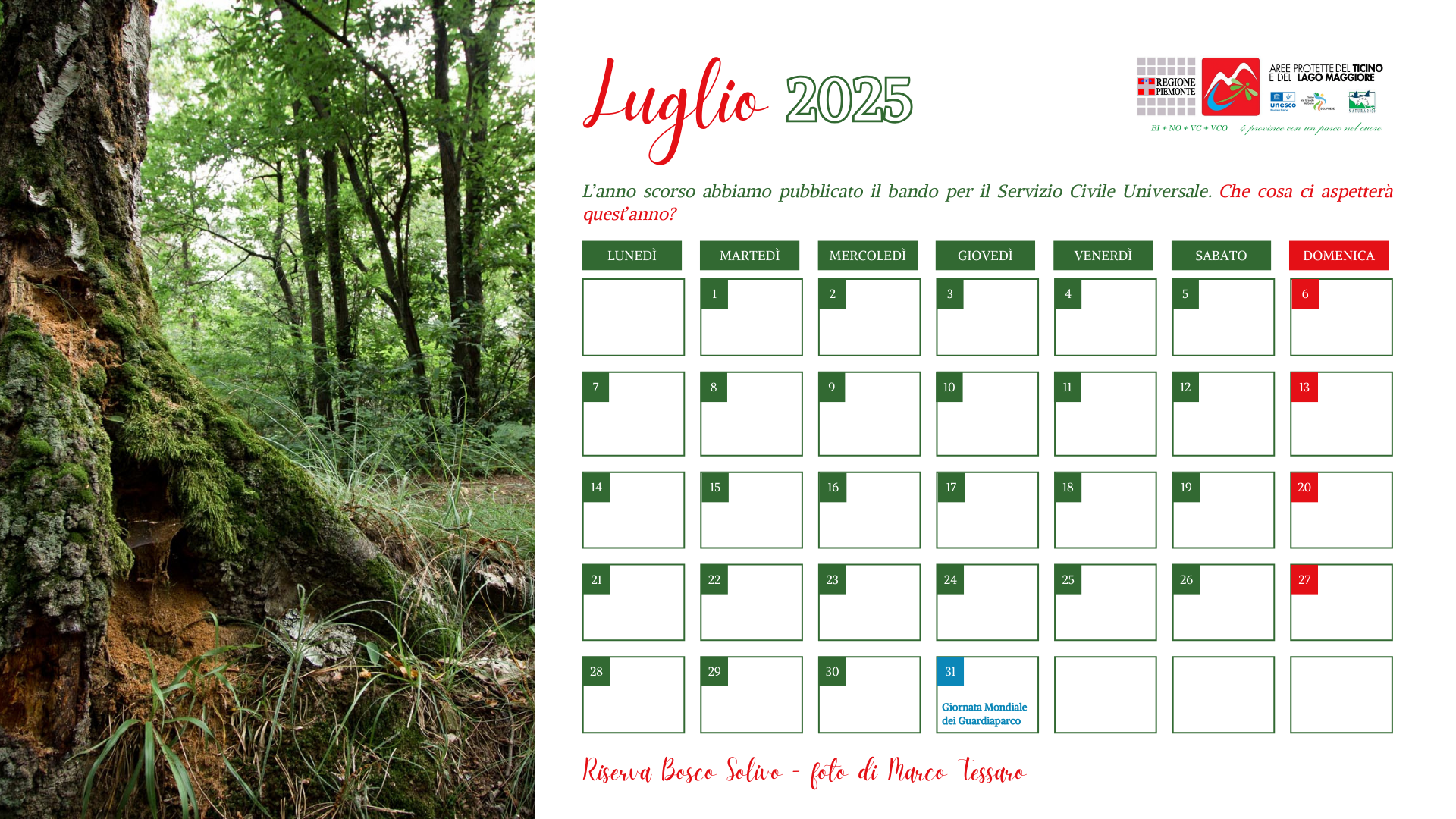 Il calendario 2026 dell'Ente di Gestione delle Aree Protette del Ticino e del Lago Maggiore