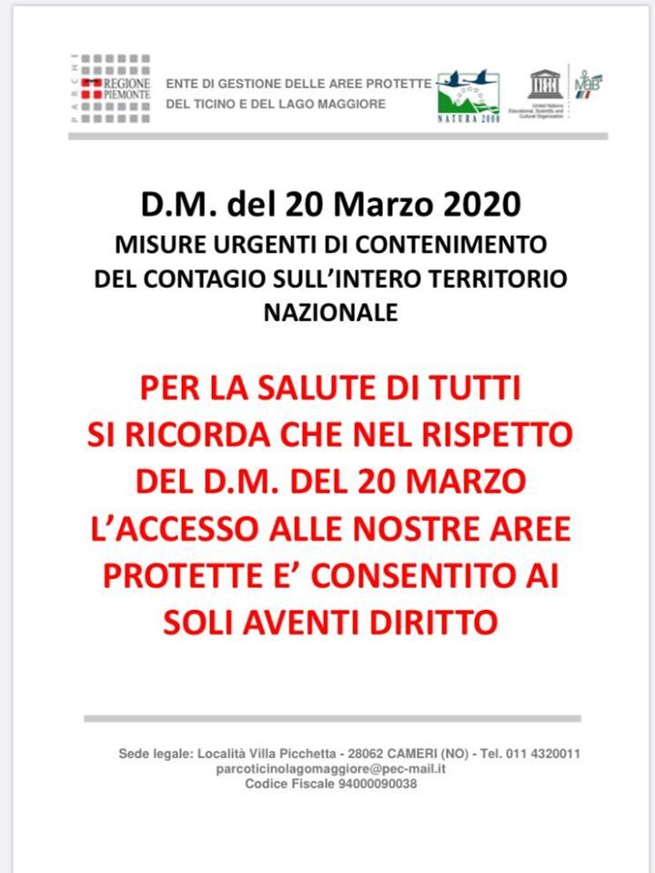 Per la salute di tutti l'accesso alle nostre aree protette è consentito solo agli aventi