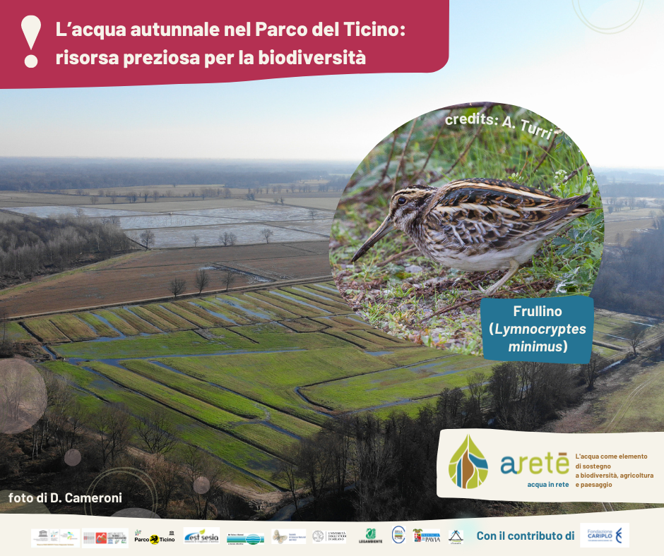 Anche quest’anno le aziende agricole del Parco del Ticino si apprestano ad effettuare la sommersione autunnale dei campi agricoli! Per almeno 20 giorni, l’acqua verrà immessa, nelle aree di Cuggiono, Castano Primo, Abbiategrasso e Vigevano, in terreni dove è già stata effettuata la raccolta di frumento e mais, e che quindi a fine estate rimarrebbero semplicemente delle distese di terreno nudo. Grazie alla presenza di acqua, fornita dal Consorzio ET Villoresi nella cornice del progetto Aretè, sarà possibile “trasformare” queste campagne in piccole aree umide temporanee, che forniranno ristoro agli uccelli che si apprestano a compiere il loro viaggio di migrazione verso Sud! La gestione virtuosa della risorsa idrica e l’esportazione di buone pratiche agricole a favore della biodiversità sono gli obiettivi primari del progetto Aretè. Vieni a scoprire tutti i nostri interventi: https://progettoarete.weebly.com/